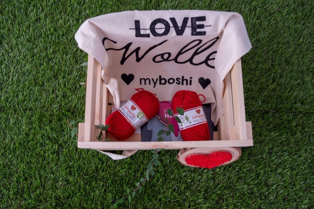 Stylisches Herz zum Häkeln inklusive Wolle, Anleitung und einer praktischen Stofftasche von myboshi