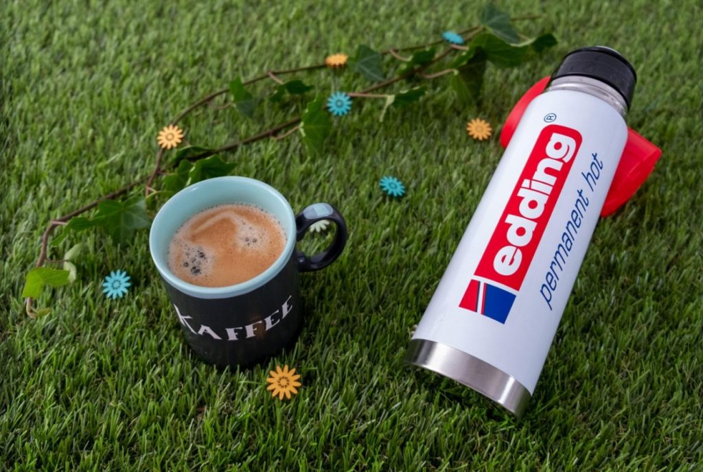 - Heiß- und Kaltgetränke perfekt transportiert in der stylischen Thermoskanne im Edding-Look.