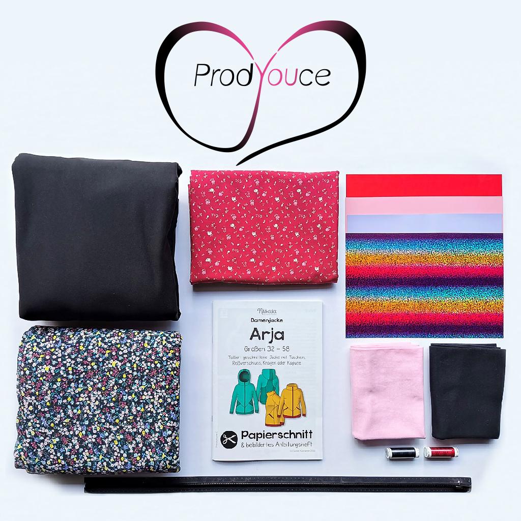 Ein Traum für Nähbegeisterte DIYsterinnen: Ein komplettes Nähset inklusive Schnittmuster, sämtlicher Stoffe, Garn, Reißverschluß und Textilfolien passend für ein Jackenschnittmuster von Prodyouce – Nähen und Basteln