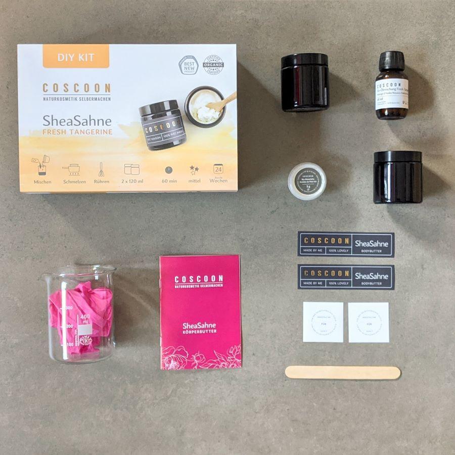 - Veganes Kosmetik-Set zum Selbermachen: Sheasahne Fresh Tangerine von Coscoon-Naturkosmetik selbermachen.