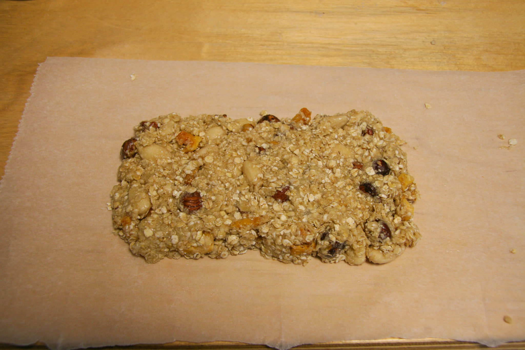 Sobald ihr mit dem Formen fertig seid, kommen die fertigen Müsliriegel für mindestens eine Stunde in den Kühlschrank.