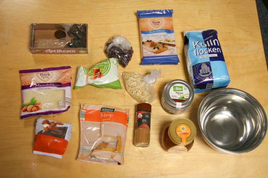 Wiegt euch die entsprechenden Mengen der Zutaten ab. Natürlich könnt ihr die Menge auch einfach verdoppeln und gleich die zweifache Menge Müsliriegel herstellen 😉