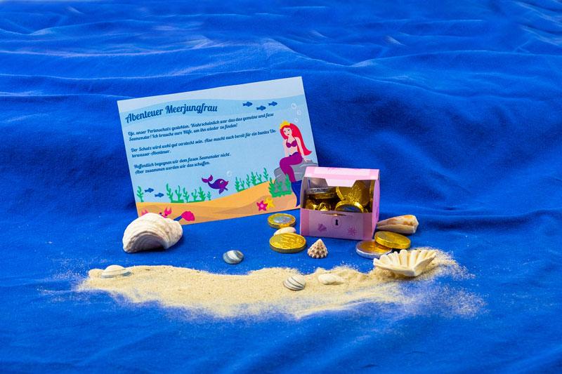 Ein Kindergeburtstag unter dem Motto „Meerjungfrau“ ist besonders im Sommer ein Hit. Die Kinder können in einem Pool, dem Schwimmbad oder im Garten in die faszinierende Unterwasserwelt eintauchen und gemeinsam auf Schatzsuche gehen. Hierbei kannst du auf unseren Artikel „Schatzsuche und Schnitzeljagd-Ideen“ zurückgreifen, um die Suche nach dem versunkenen Schatz noch spannender zu gestalten. Mit dem Kindergeburtstagsset „Meerjungfrau“ aus unserem Shop erhältst du zudem tolle Vorlagen für Einladungskarten, Dekorationen und Spiele, die perfekt auf das Motto abgestimmt sind.
