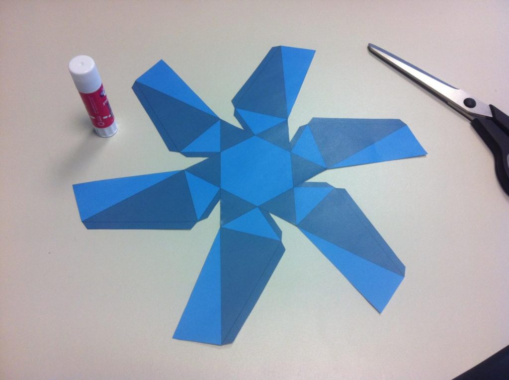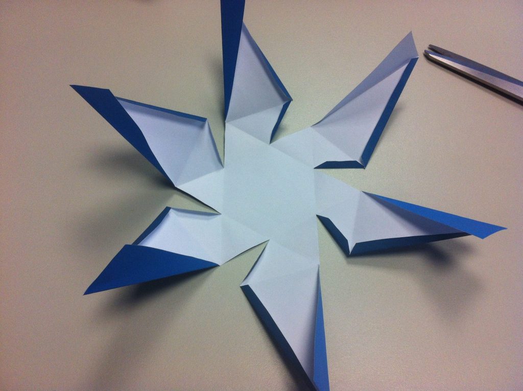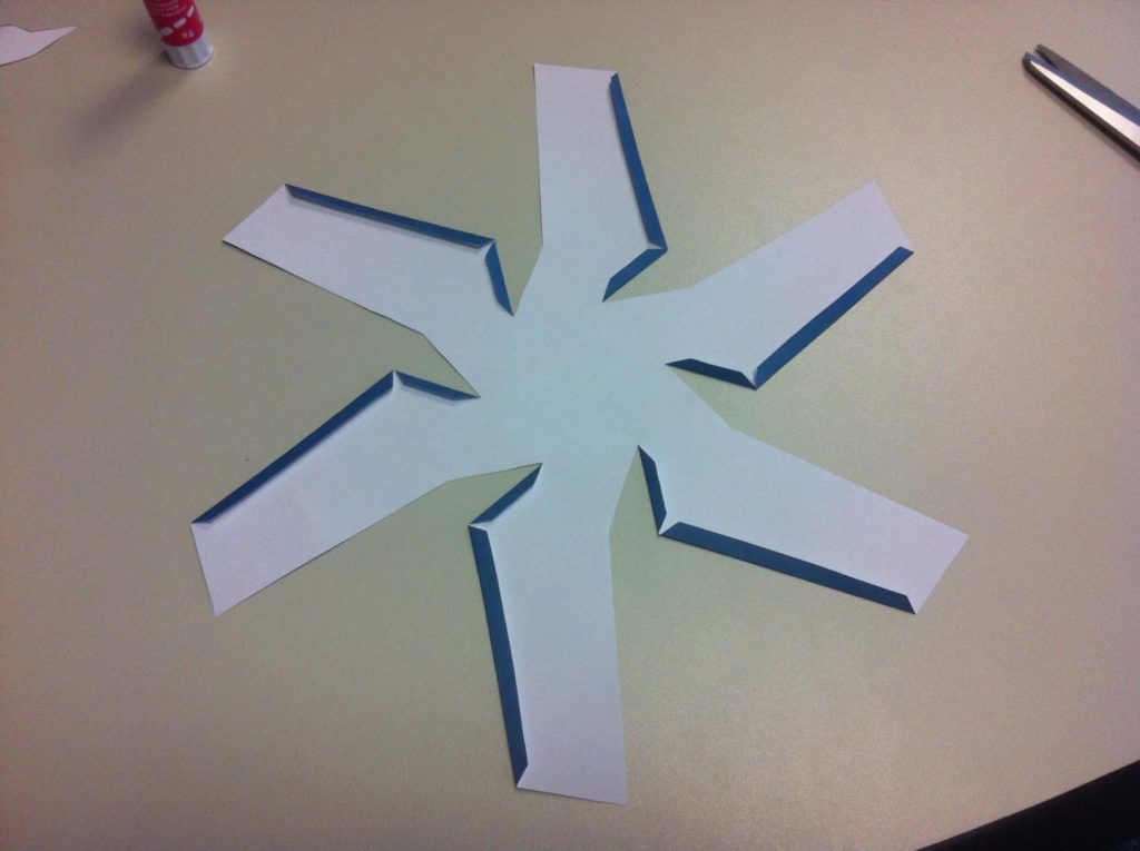 Wenn ihr damit fertig seid, dann müssen noch sechs Faltlaschen eingeschnitten werden, da sie sonst nicht eingefaltet werden können und wir diese nun für den nächsten Schritt brauchen.