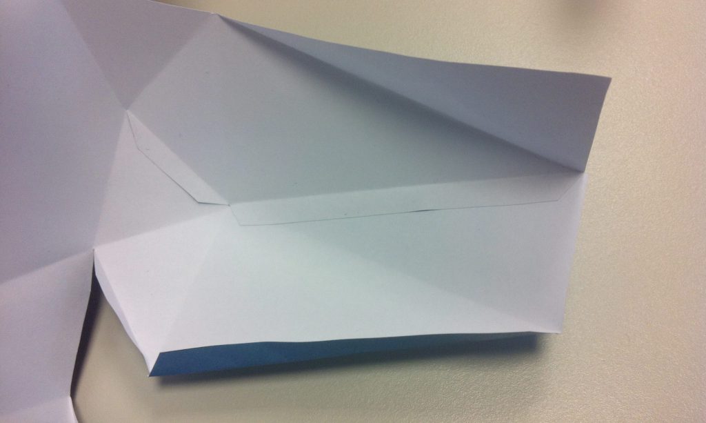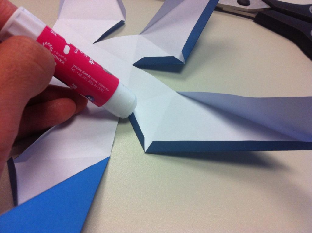 Nun falten wir zunächst die Faltlaschen nach hinten, die wir später zum Festkleben benötigen.