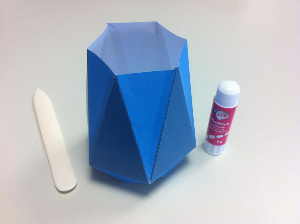 Wenn ihr alles gefaltet habt, sollte eure Vorlage für den Stiftebecher nun so aussehen: