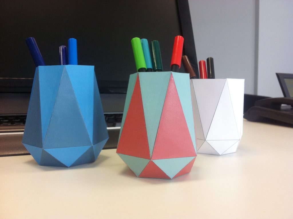 Und zwar handelt es sich dabei um schicke Stiftebecher aus stabiler Pappe in ausgefallenen Formen und Farben. Die Vorlage könnt ihr euch downloaden. Dann können wir alles gemeinsam Schritt für Schritt durchgehen. Viel Spaß euch beim Nachbasteln!