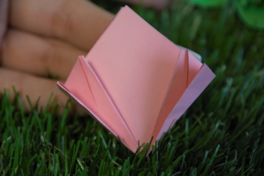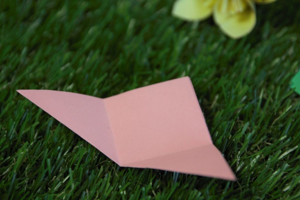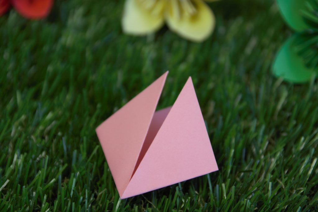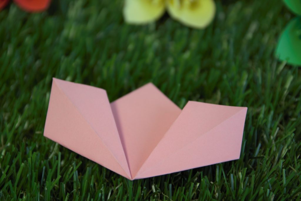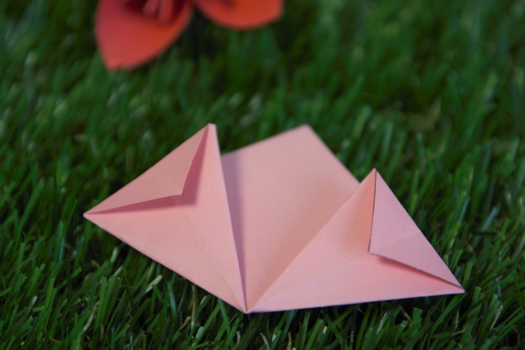 - Die spitzen Kanten werden nach innen geklappt und zur Hälfte gefaltet.