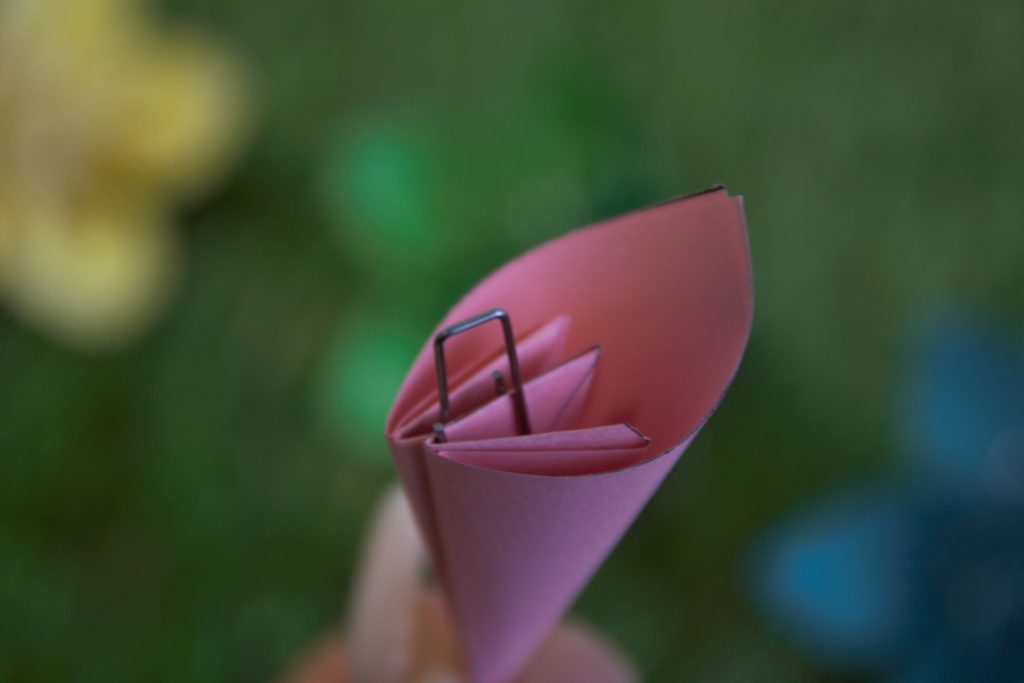 - Die Mitte wird dann mit einer Büroklammer befestigt.