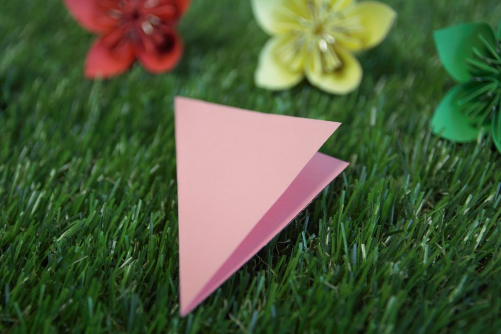 - Zuerst falten wir das Quadrat zu einem Dreieck.