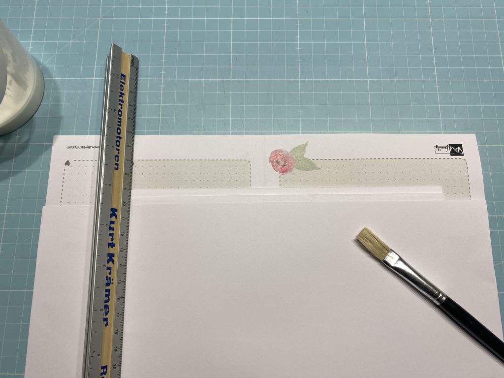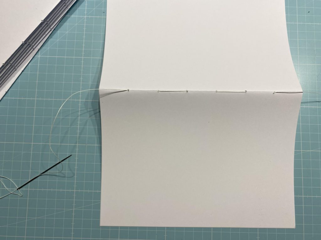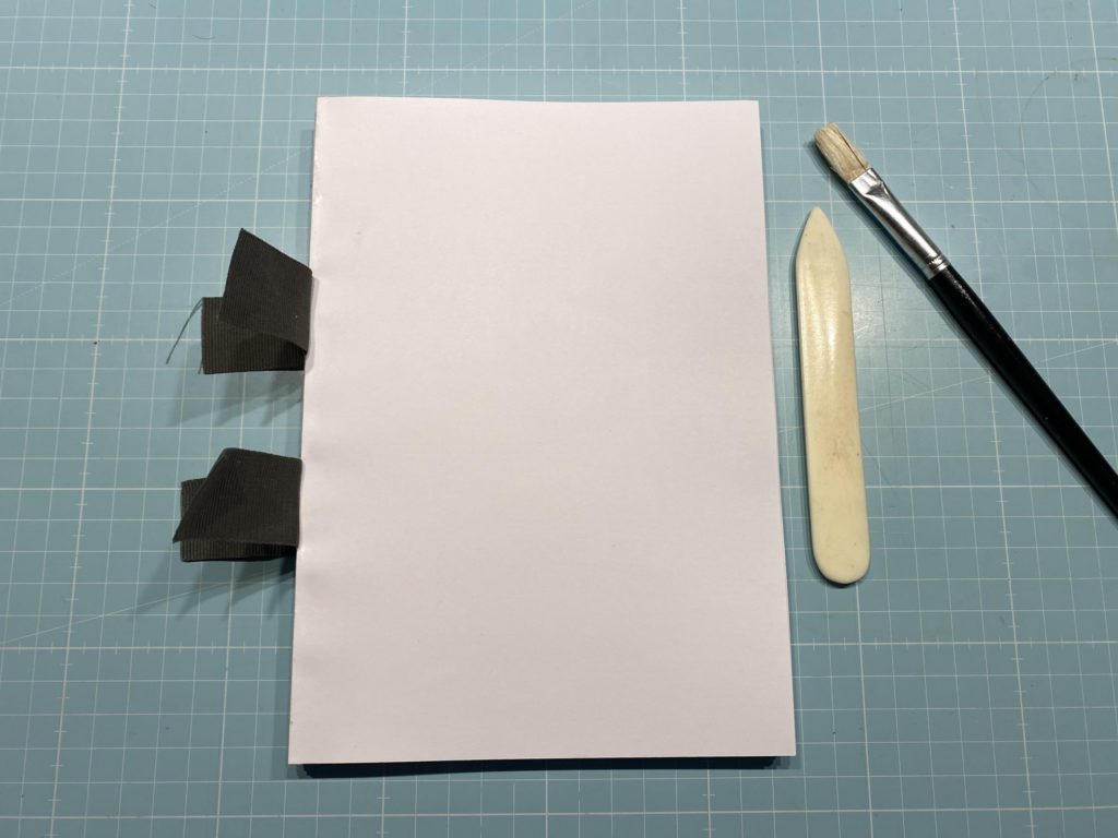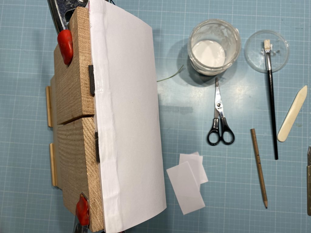 Als nächsten Schritt leimst du den gesamten Buchrücken satt ein und lässt die gesamten Arbeit für mindestens 1 Stunde trocknen.