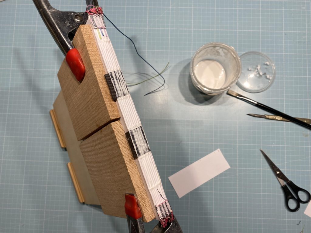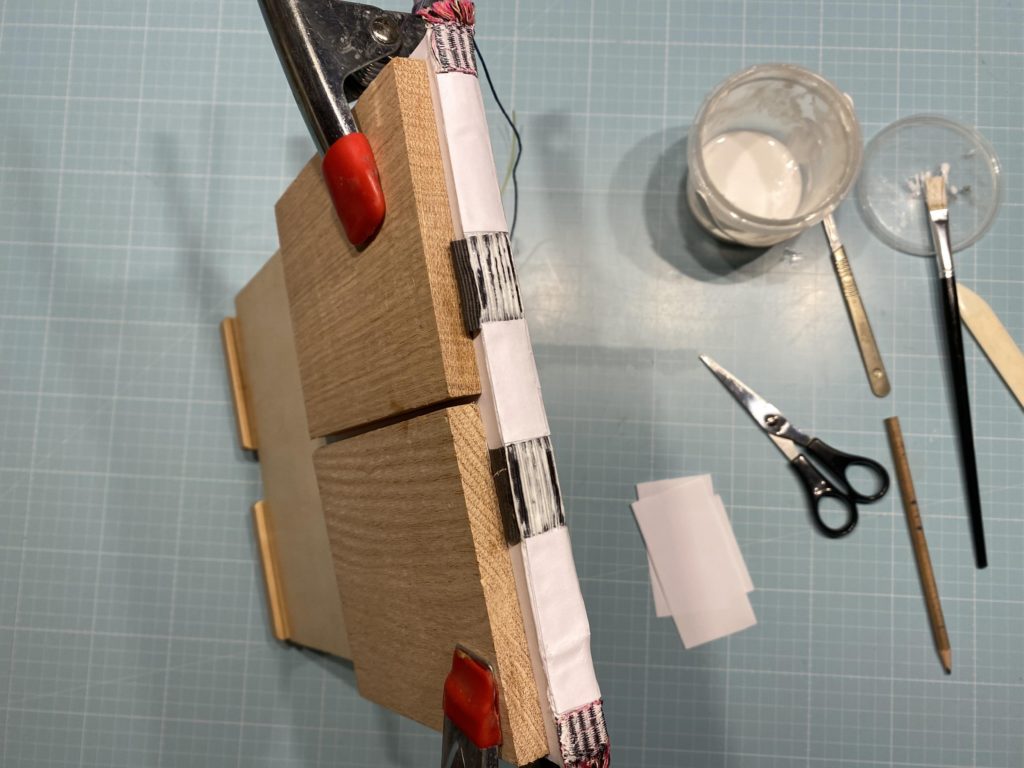 - eine Buchpresse oder Brettchen und 2 Zwingen