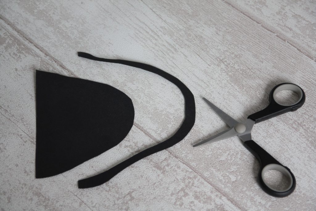 – Einen schmalen Halbkreis aus schwarzer Pappe ausschneiden