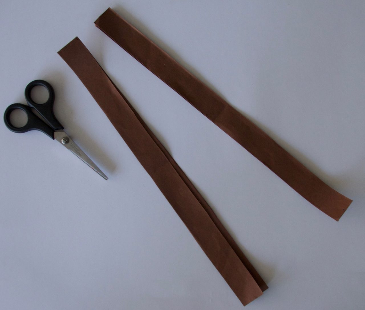 – aus brauner Pappe 2 dünne und 2 etwas dickere Streifen ausschneiden und Hexenleitern daraus basteln (1,5 cm Beine, 1 cm Arme)