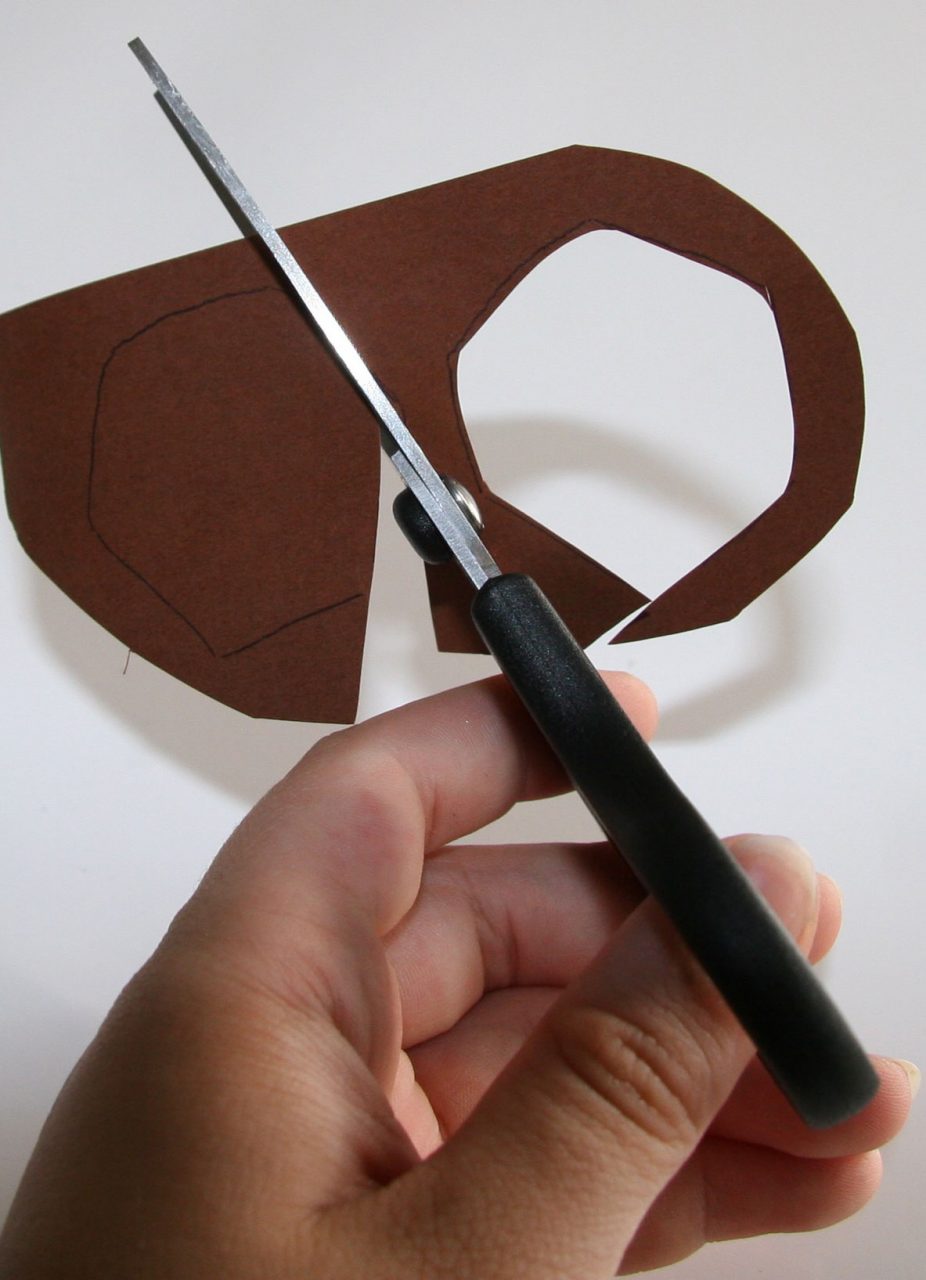 – Ohren vorzeichnen und auschneiden, einen kleinen Schnitt in die Seite schneiden, um sie später an der Flasche befestigen zu können