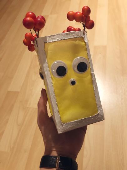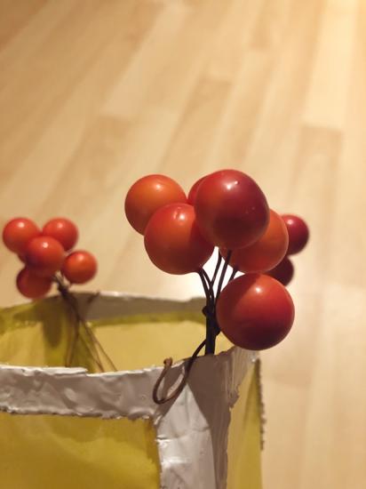 Danach haben wir uns etwas Tischdekoration genommen und diese in den jeweiligen Ecken des Getränkekartons befestigt.