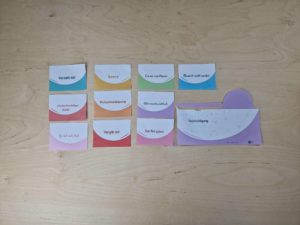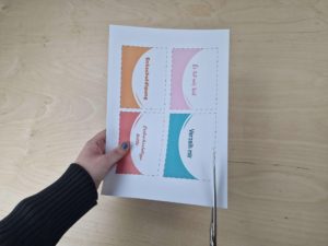 Nun schneidest du die einzelnen „Sprüche“ aus. Ich empfehle dir, diese innen am Rand auszuschneiden, so hast du die Umrandungslinie direkt weggeschnitten.