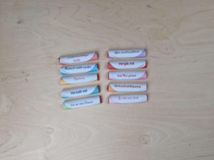 Als erstes druckst du die Vorlagen Entschuldigung oder Entschuldigung (Streifen) aus.