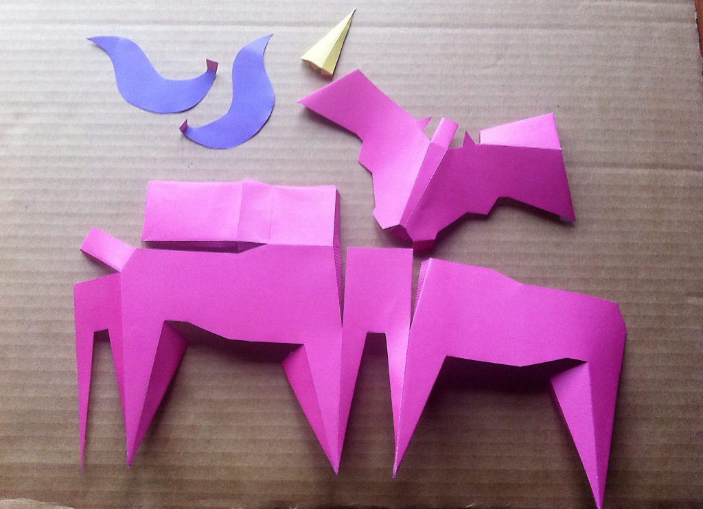 Die Idee kam mir, als ich auf Pinterest einige interessante Papercraft Ideen fand. Das ist wirklich ein sehr interessantes Handwerk und mir war gar nicht bewusst, was für tolle Sachen sich mit Papier zaubern lassen. In meiner Neugier habe ich einige davon direkt selbst ausprobiert. Zugegeben: Es ist etwas kompliziert gewesen, aber als ich den Bogen raus hatte, lief alles wie geschmiert. Und das hat mir so gut gefallen, dass ich gerne selbst eine solche Anleitung machen wollte. Also habe ich mich an meinen Schreibtisch begeben und viele Ideen aufgeschrieben und skizziert. Es war etwas kniffelig, doch letztendlich habe ich es geschafft und eine gute Vorlage für euch erstellt, die ihr mit etwas Geduld dann zu einem schönen Einhorn zusammenfalten und -kleben könnt.