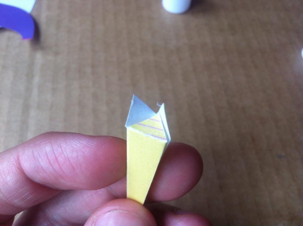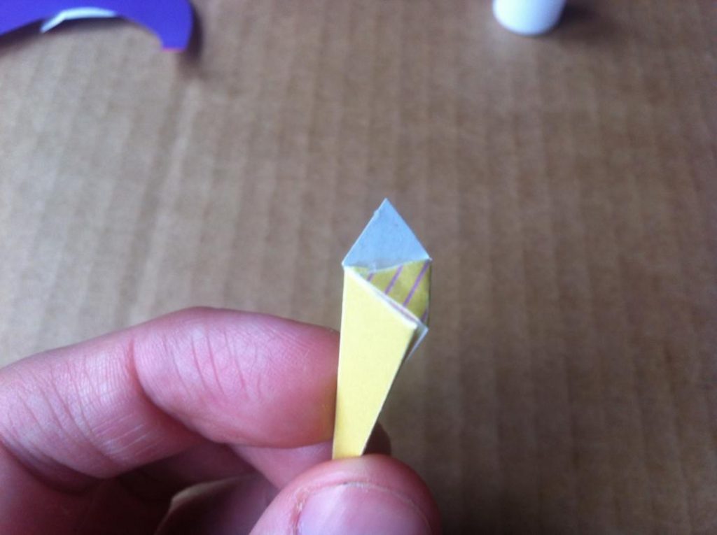 Dann fehlen nur noch das schöne Horn und der Schwanz vom Einhorn. Das Horn ist ganz schnell zusammengeklebt. Dazu zeichne ich mir diesmal nichts auf der Rückseite ein, da es wirklich nur ein paar kleine Schritte sind.