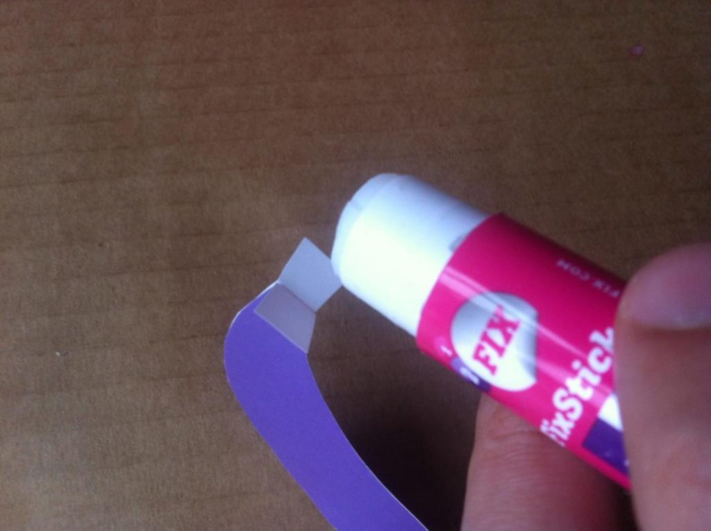 Danach kann ich endlich mit dem Kleben anfangen. Ich beginne nun mit der ersten Klebefläche und gebe dazu nun etwas Kleber auf die farbige Seite der Stelle, die ich mit einer 1 markiert habe und verbinde diese mit der anderen Fläche, die ebenfalls eine 1 hat. Danach mache ich weiter mit der zweiten Klebefläche mit der 2 und verbinde diese ebenfalls mit der anderen 2. Dies mache ich solange, bis ich mit allen 17 Klebeflächen durch bin.