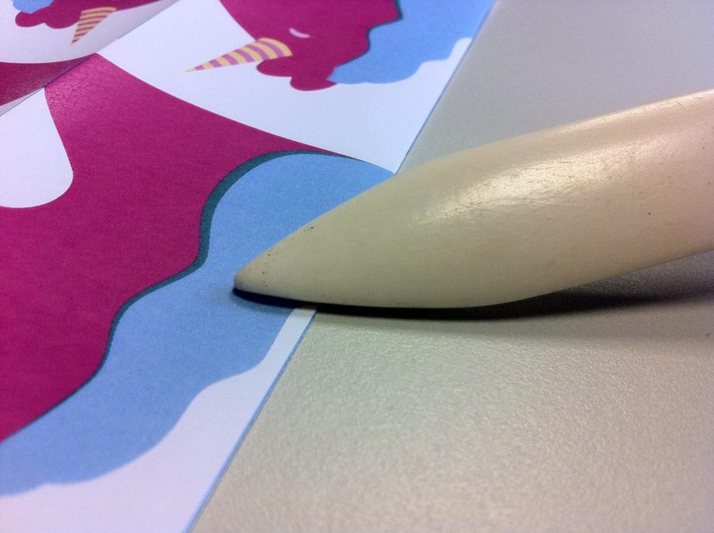Nun muss das Papier gefaltet werden. Orientiert euch dabei an den vertikalen Linien und faltet das Papier genau dort. Ich nehme mir zur Hilfe gerne ein Falzbein. Führt dies nun für das gesamte Papier durch.
