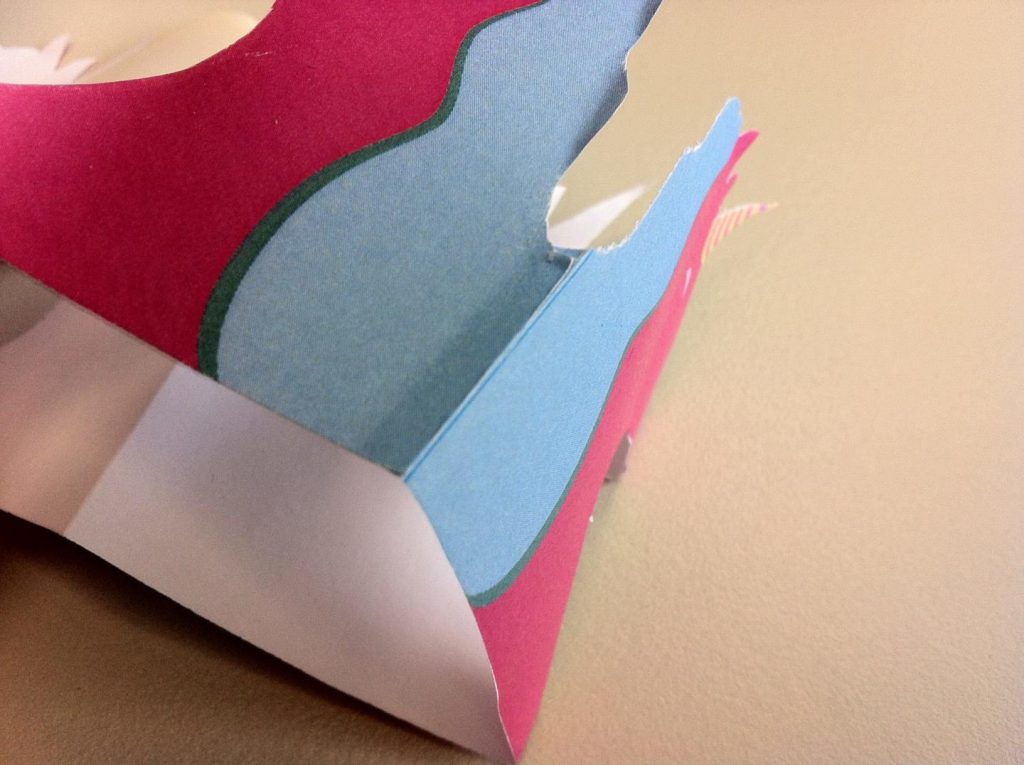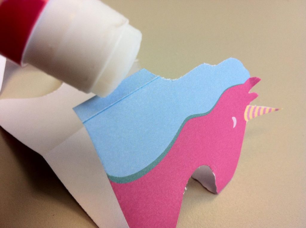 Nun müsst ihr die Krone nur noch an beiden Enden zusammenkleben. Dafür habt ihr nun die kleine Lasche an der einen Seite und klebt die Krone an dieser Stelle zusammen.