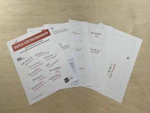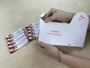 Du fragst dich jetzt sicher, wie das Ganze funktioniert. Es ist ganz einfach: Du kaufst die Banderolen in unserem Shop, druckst sie aus und schneidest sie anschließend aus. Dann umwickelst du jeden Duplo Riegel mit einer Banderole und klebst sie vorsichtig fest. Achte darauf, dass das „du“ von Duplo sichtbar bleibt, um die direkte Ansprache zu gewährleisten.