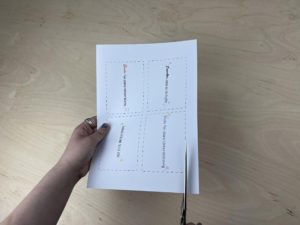 Nun schneidest du die einzelnen „Sprüche“ aus. Ich empfehle dir, diese innen am Rand auszuschneiden, so hast du die Umrandungslinie direkt weggeschnitten.