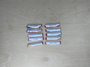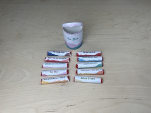Natürlich kannst du die Banderolen auch für andere Schokoladen-Riegel verwenden oder sie sogar noch weiter personalisieren. Deiner Kreativität sind keine Grenzen gesetzt. Wichtig ist nur, dass deine Botschaft von Herzen kommt.