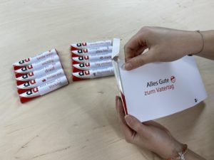 Der Vatertag rückt immer näher. Sicher, die Wertschätzung für deinen Vater kannst du ihm auch nur mit einer Umarmung zeigen. Kleine Geschenke machen dir und deinem Papa Spaß; aber du kannst dies zusätzlich mit einer kleinen und kreativen Geste unterstreichen. Wir haben tolle Sprüche für alle Papas zusammengestellt. Kombiniert mit Duplo-Riegeln – der längsten Praline der Welt – hast du ein individuelles und liebevolles Vatertagsgeschenk gezaubert. Die Materialien, die du brauchst, hast du sicherlich alle zu Hause und die Banderolen Vorlage kannst du dir in unserem Shop downloaden.