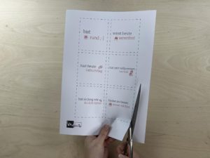 Nun schneidest du die einzelnen „Sprüche“ aus. Ich empfehle dir, diese innen am Rand auszuschneiden, so hast du die Umrandungslinie direkt mit weggeschnitten.