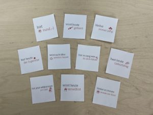 Wir haben für jeden Anlass ganz tolle Sprüche vorbereitet, nach dem Motto: Sag’s mit Duplo.