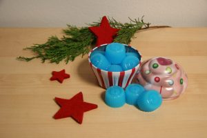 Eine wirklich schöne Variante. Vor allem der Verlauf in der Form hat es uns angetan. Nicht schlecht, finden wir. In der Form der kleinen Kuchen bekommt man gleich Lust darauf, noch mehr von den kleinen Dusch Jellys herzustellen!
