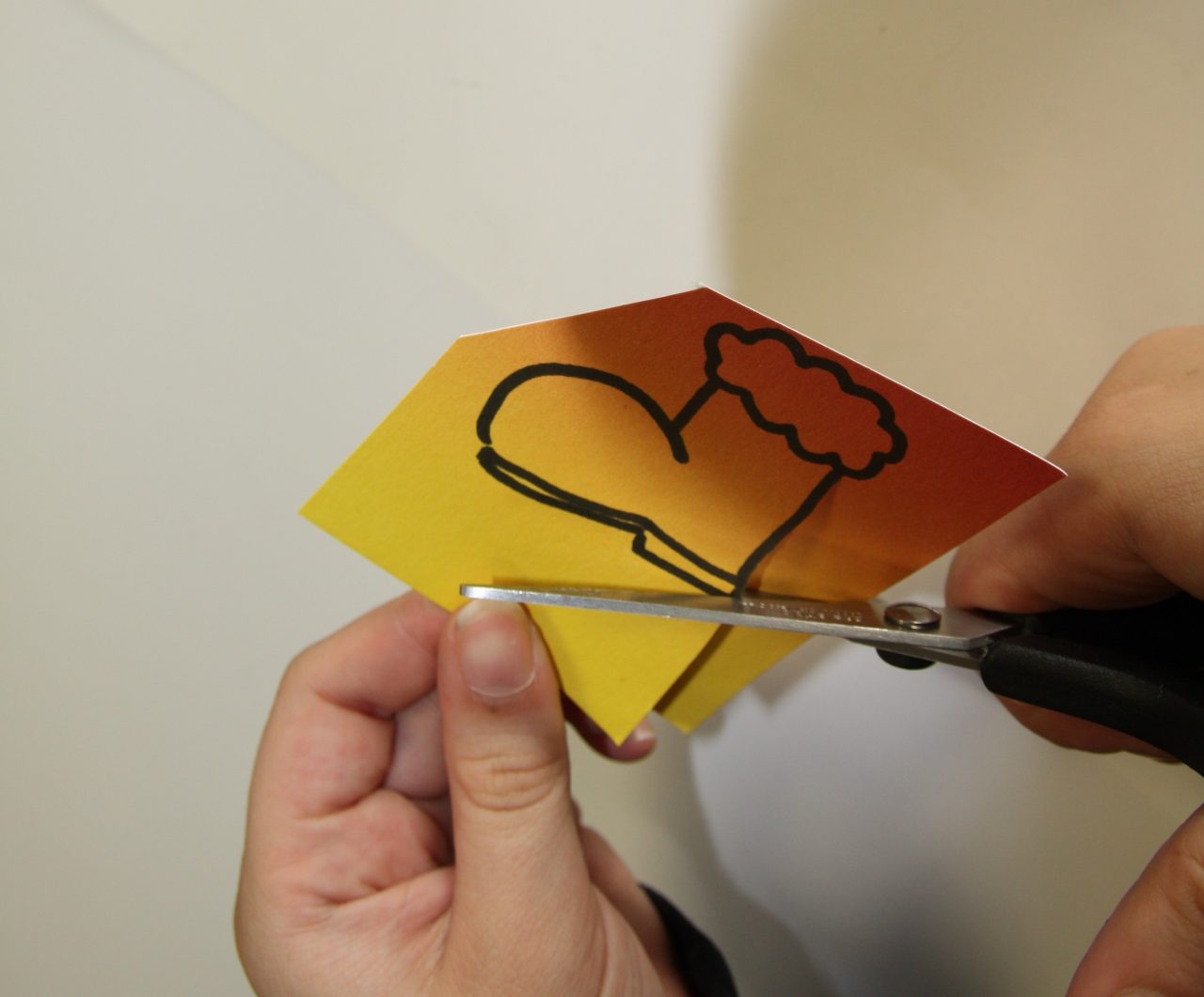 Damit die Waggons und die Lok des Zuges alle unterschiedliche Farben haben und man die Überreste der enthaltenen Lebensmittel nicht mehr sieht, muss man die Verpackungen von innen und außen verkleiden. Dazu nehmt ihr euch zuerst die bunte Pappe und zeichnet darauf jeweils die Umrisse beider Seiten der Verpackungen ab. Anschließend könnt ihr sie ausschneiden und auf die Außenseite der Verpackungen kleben.