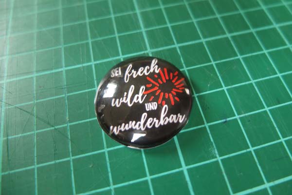 Ganz einfach nun den Glascabochon – mit deinem Motiv – in die Fassung hineinkleben. Auch hier wieder gut andrücken und ordentlich trocknen lassen!