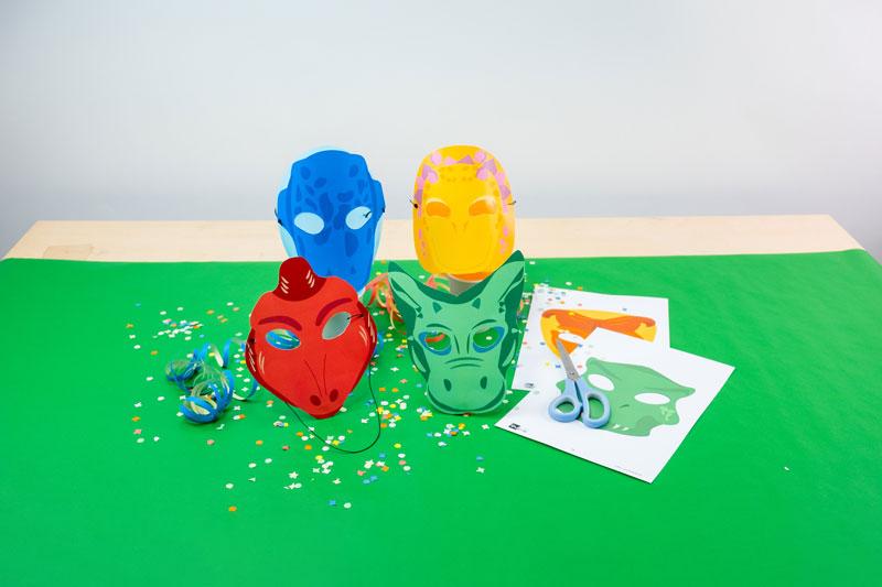Ob Halloween, Fasching, oder ein Kindergeburtstag – Masken sind ein Hit. Ihr könnt mit einfachen Materialien wie Papptellern oder Vorlagen aus unserem Shop spannende Masken gestalten. Und das Beste: Für die schnelle Verkleidung haben wir im Shop Maskensets zu Themen wie Ritter, Dinosaurier, Aliens, Meerestiere und viele mehr. Einfach ausdrucken, ein Gummiband anbringen und fertig ist die perfekte Maske!