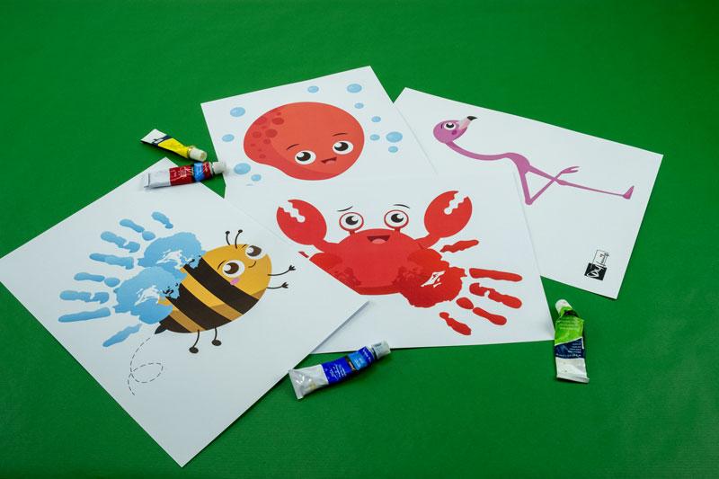- Handabdrücke machen: Drücke die bemalten Hände vorsichtig auf das Papier oder die Leinwand. Platzierung und Druck können variieren, um kreative Effekte zu erzielen.
