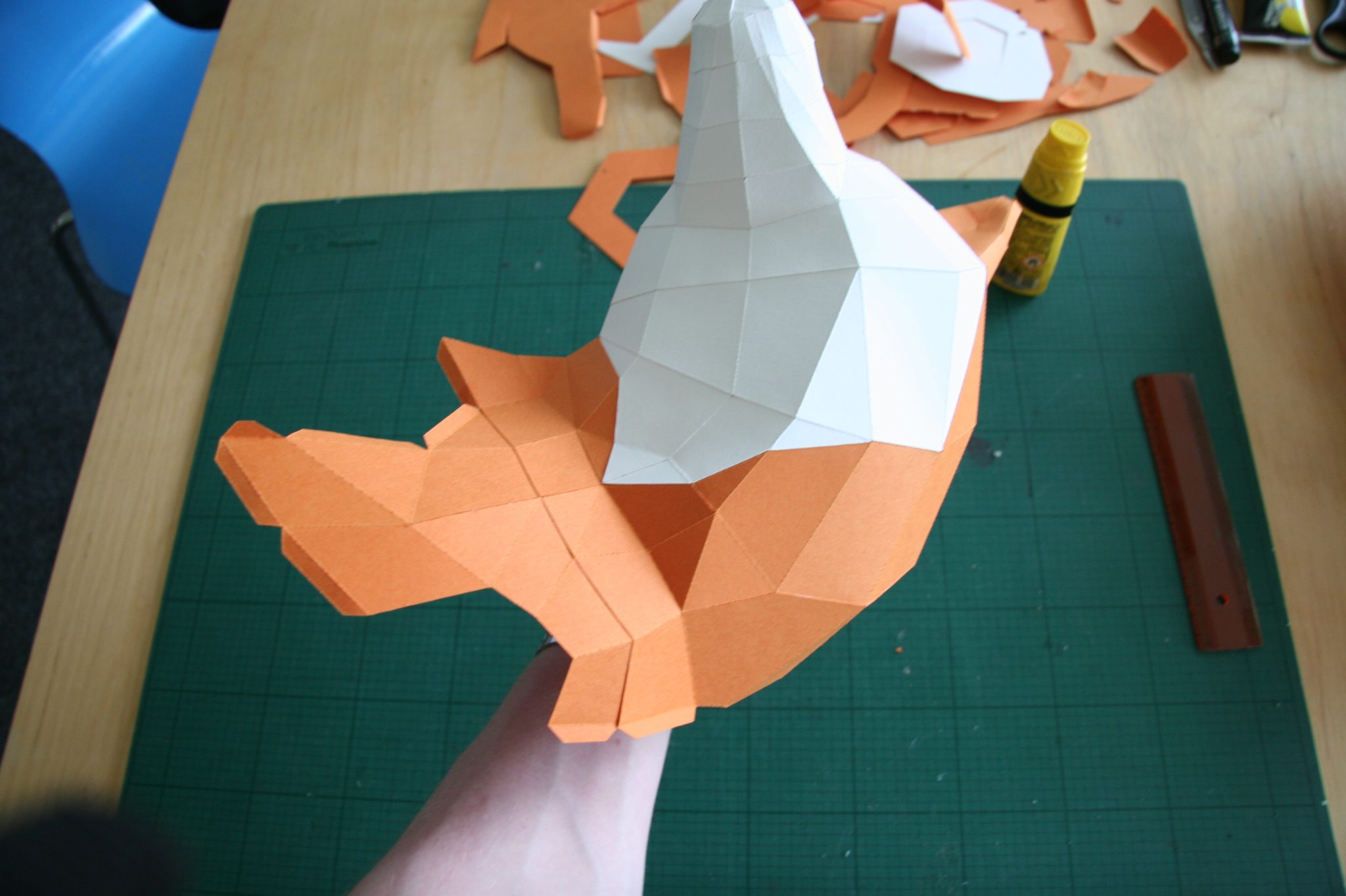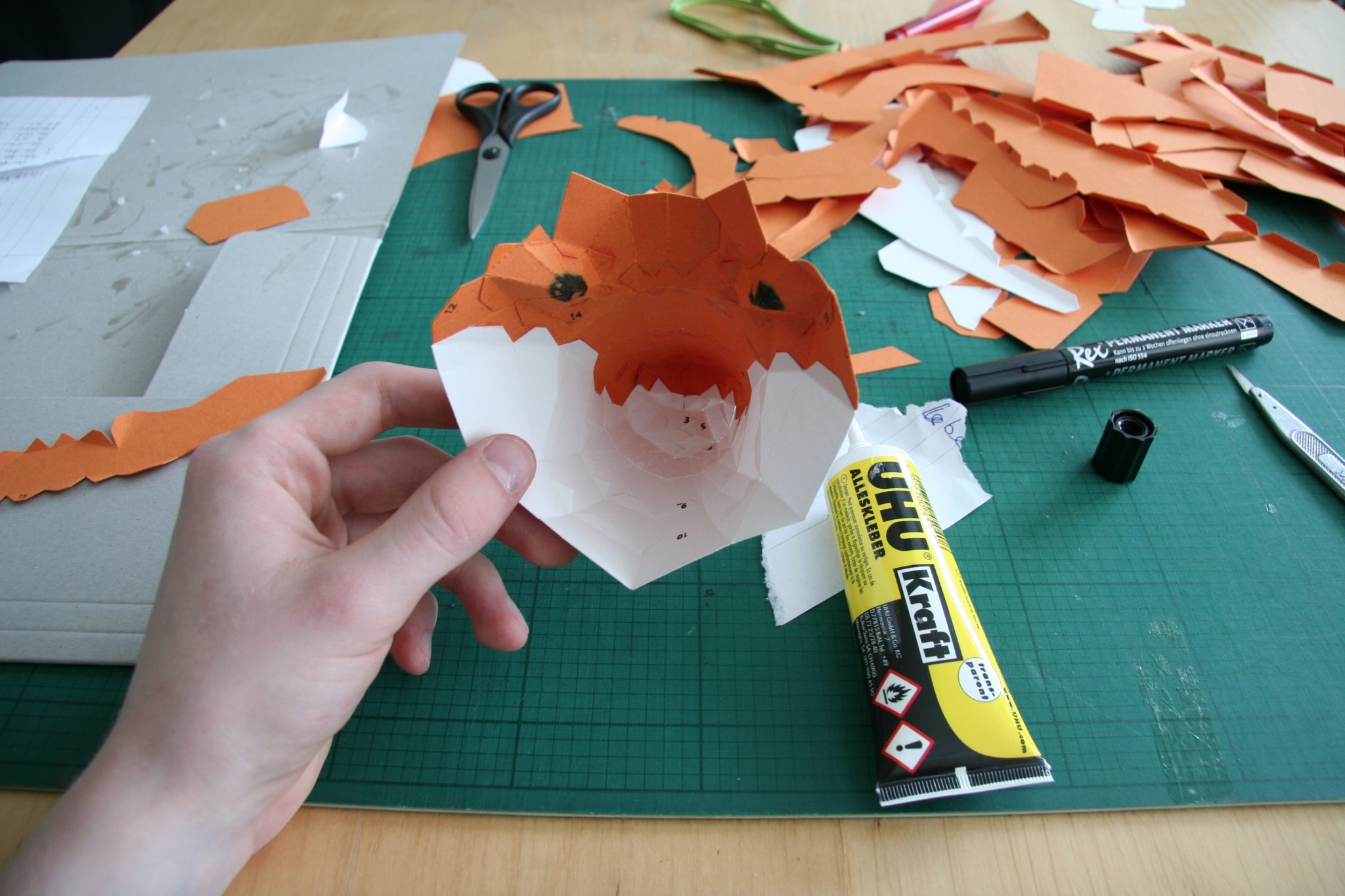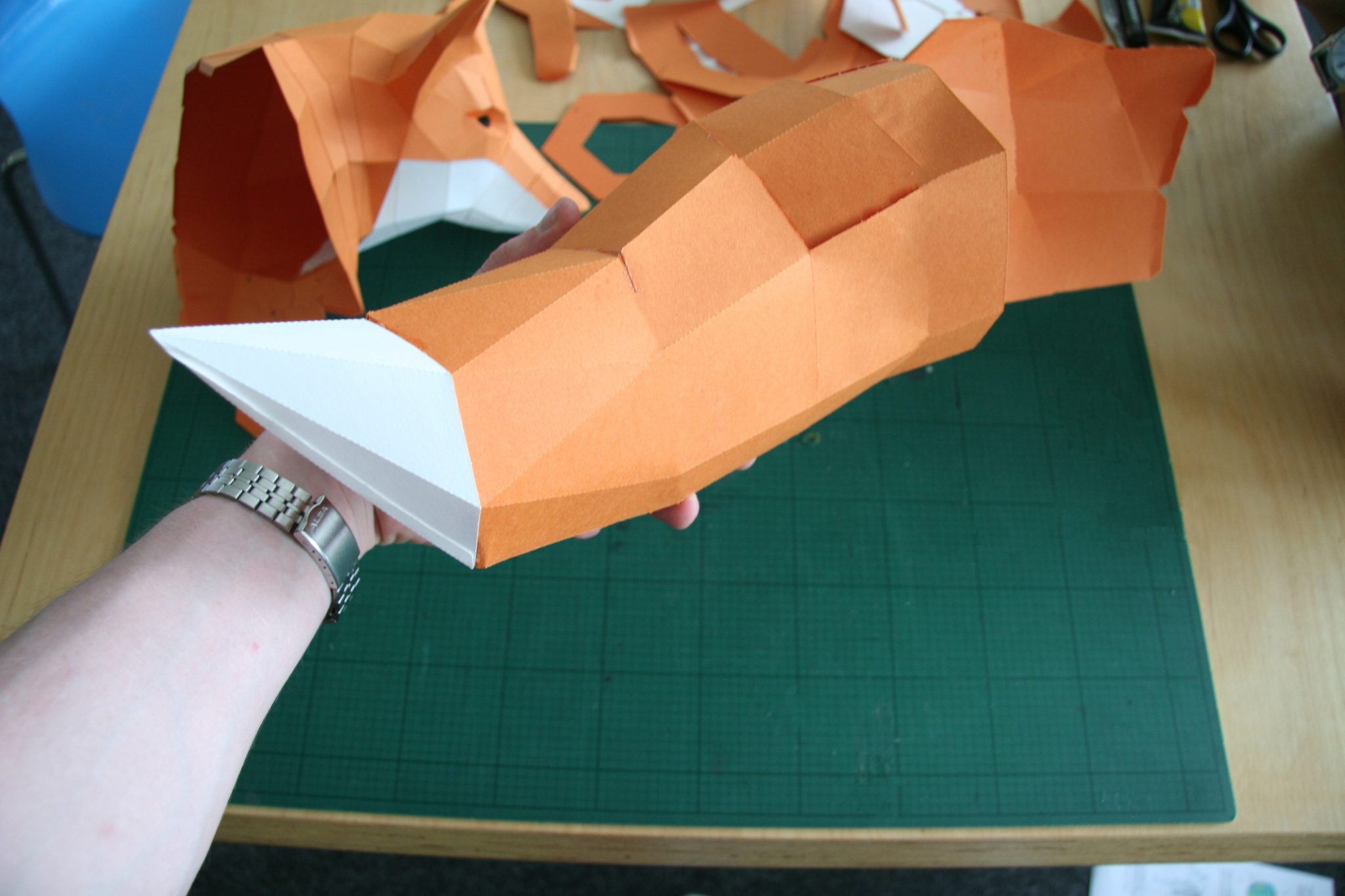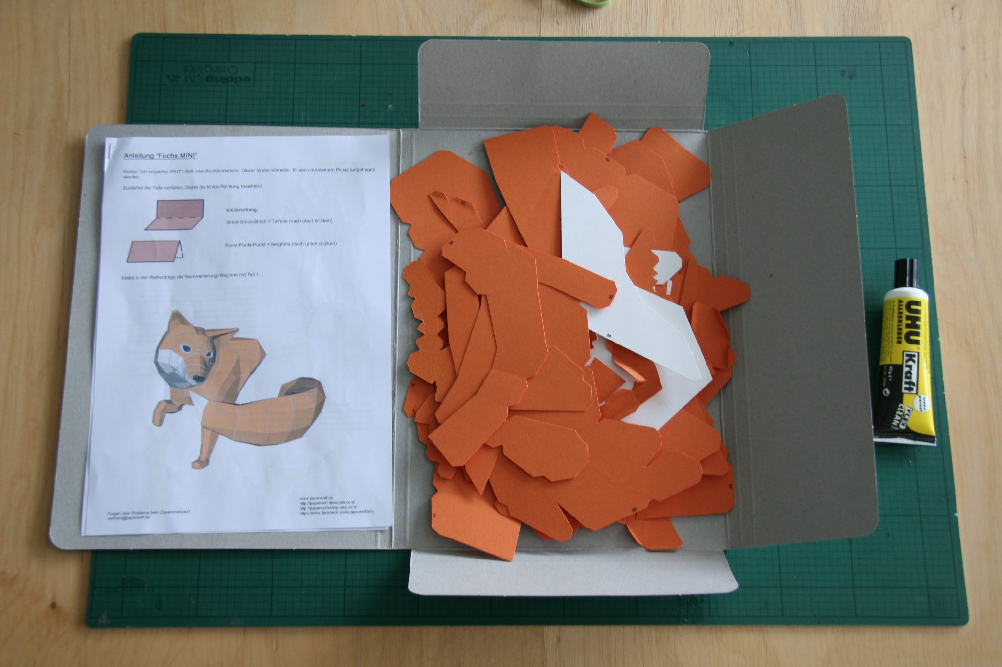 Natürlich darf der Schwanz des Fuchses nicht fehlen! Dieser besteht aus ein paar großen Teilen die vor dem Kleben gut geknickt werden müssen.