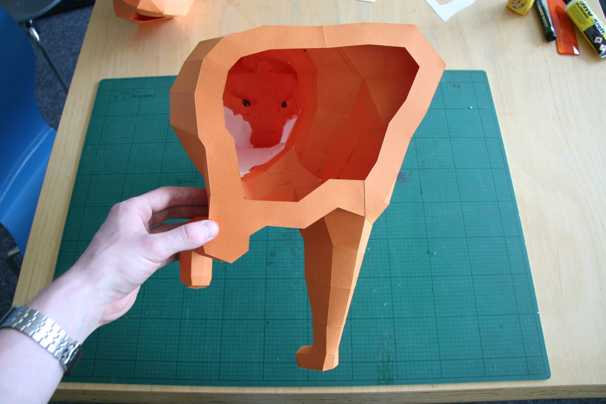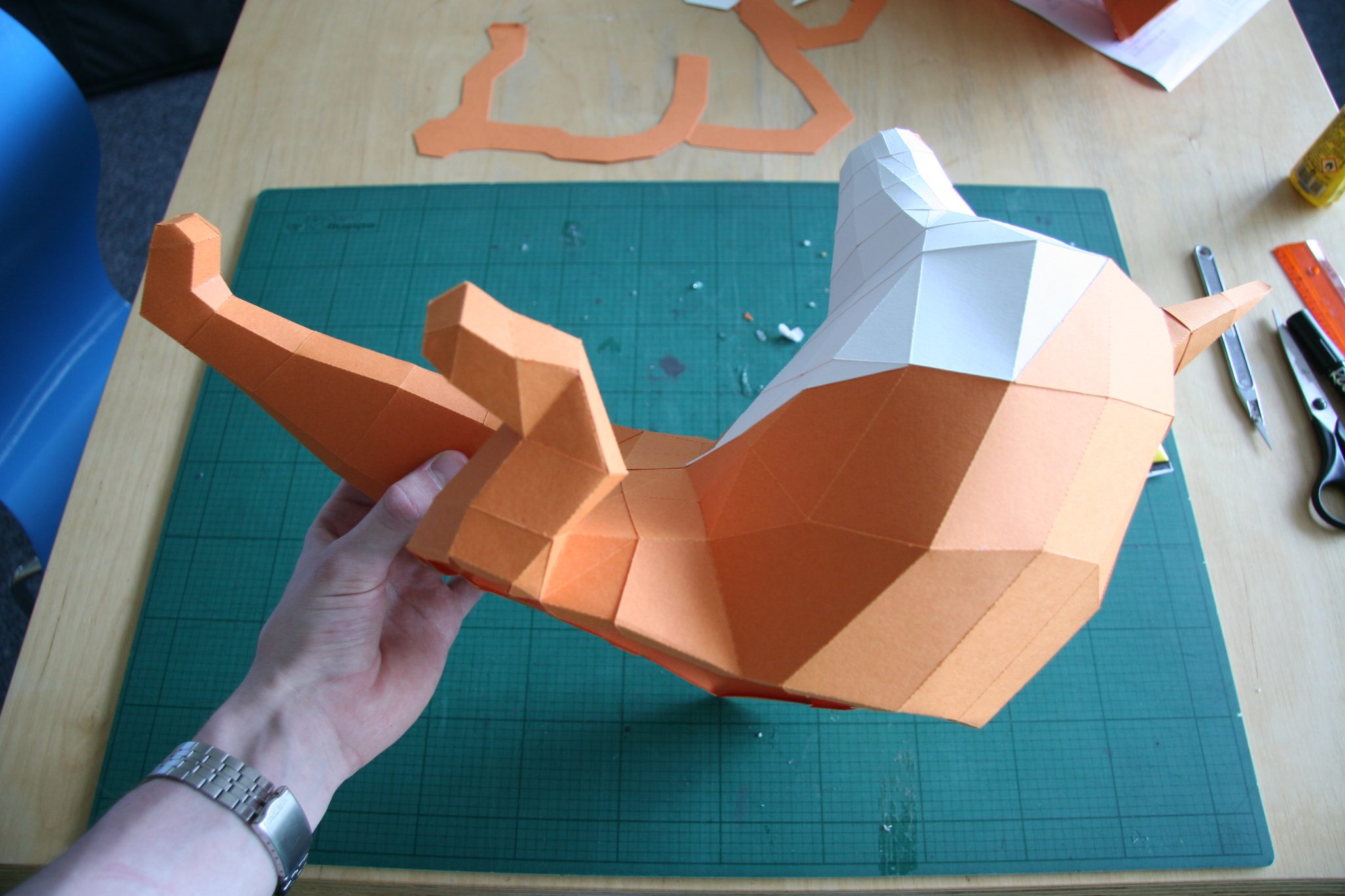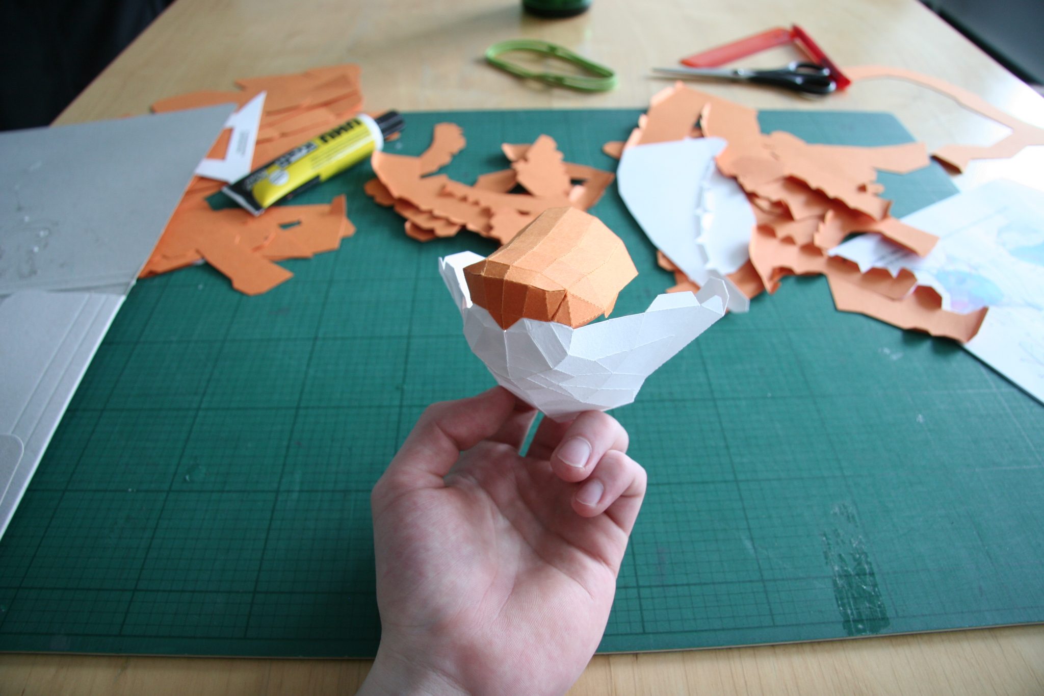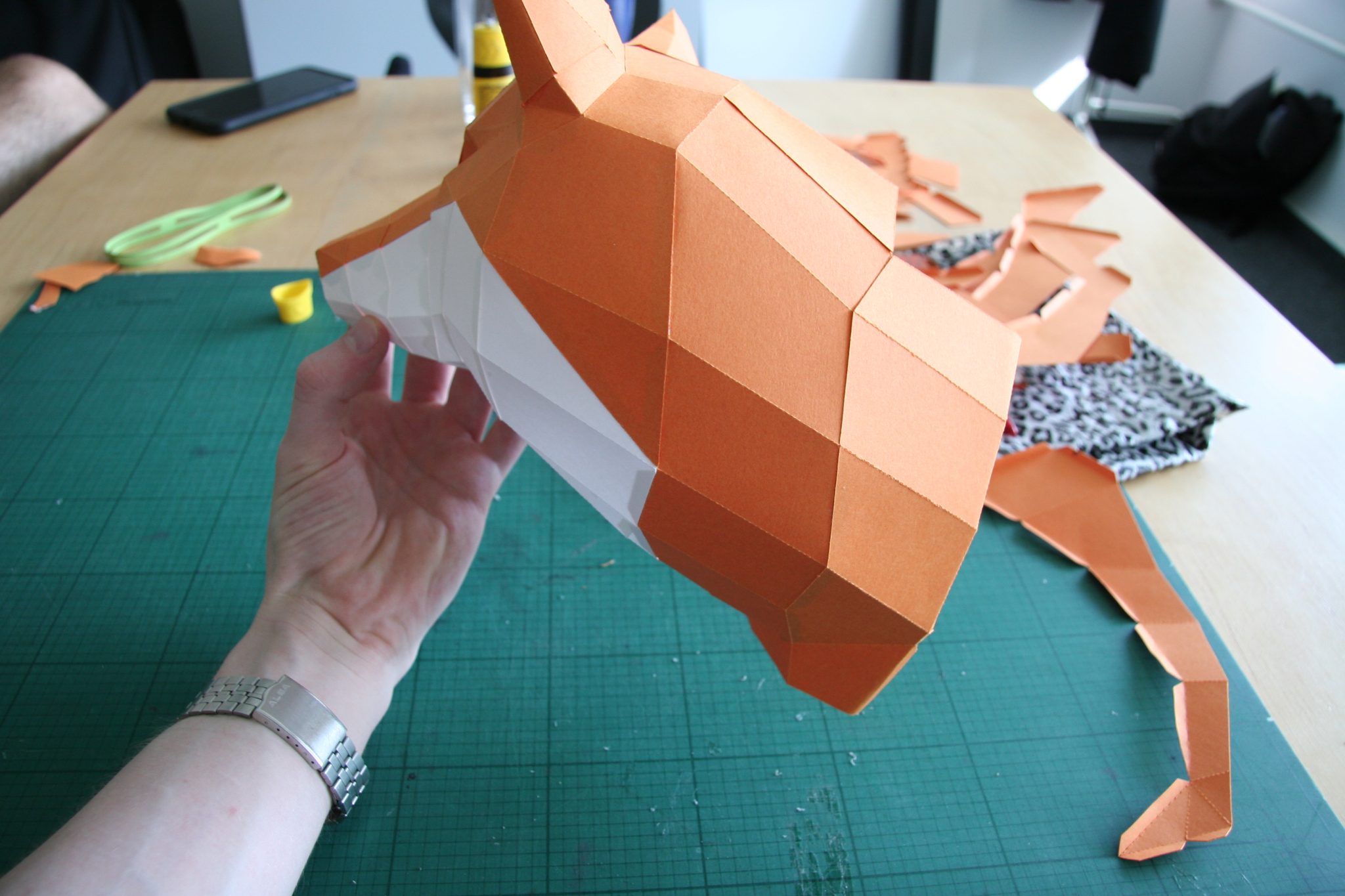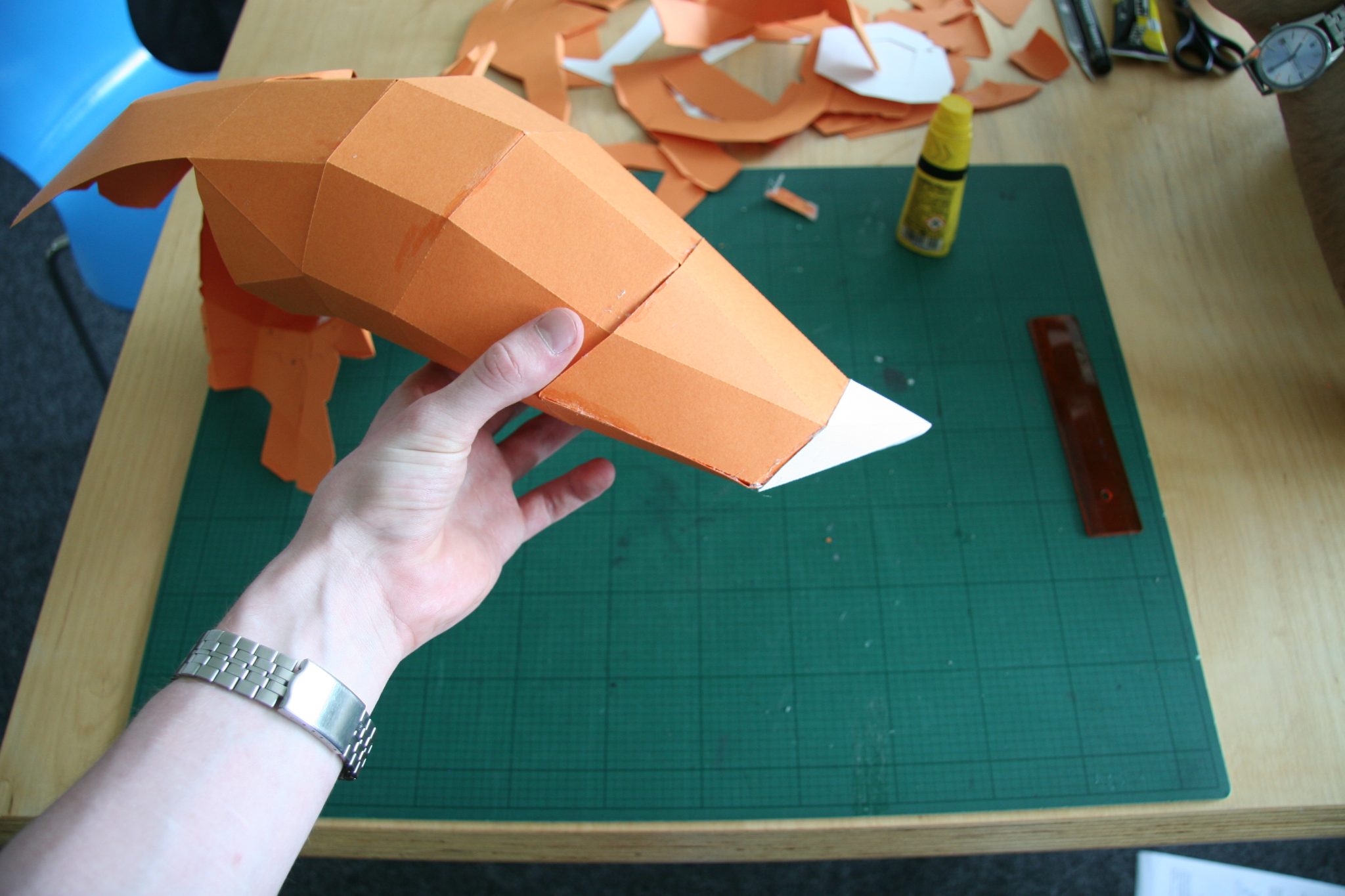 Natürlich darf der Schwanz des Fuchses nicht fehlen! Dieser besteht aus ein paar großen Teilen die vor dem Kleben gut geknickt werden müssen.