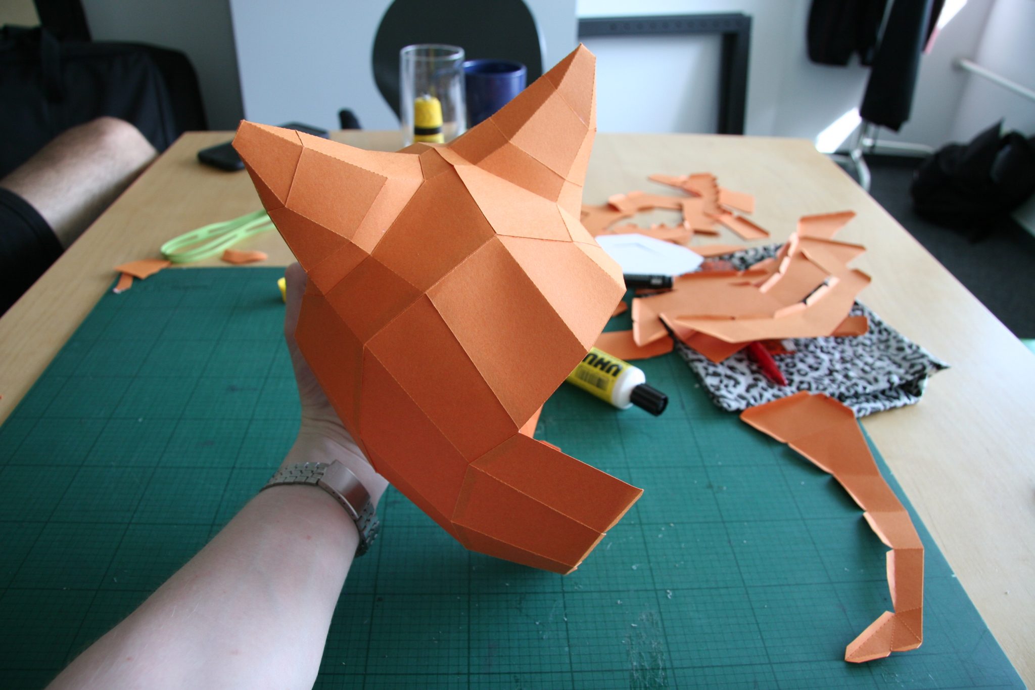 Nach dem Ankleben der letzten Teile könnt ihr dann entscheiden wo ihr euren Fuchs den festkleben wollt.