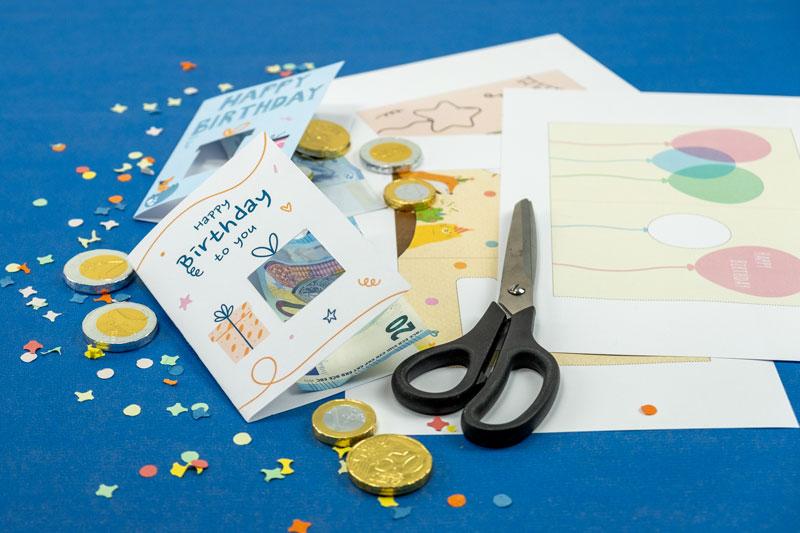Das Schöne an unseren DIY-Vorlagen für Geldgeschenke ist, dass sie einfach zu verwenden sind. Mit wenigen Handgriffen könnt ihr etwas ganz Besonderes erschaffen. Ihr benötigt nur unsere Vorlagen, eine Schere, etwas Klebeband und natürlich das Geld, das ihr verschenken möchtet.