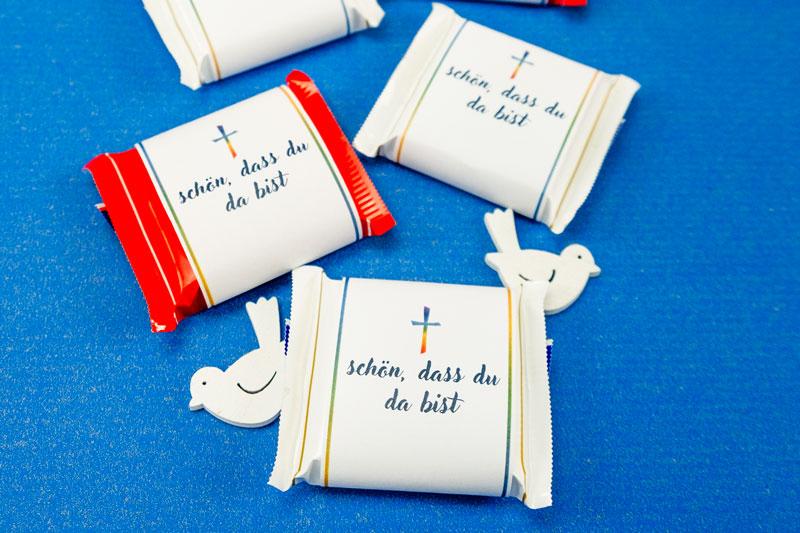 Stellt euch vor, ihr habt kleine Ritter Sport Schokoladen, umhüllt von zauberhaften Banderolen, die nicht nur das Auge erfreuen, aber auch eine süße Botschaft überbringen. Unsere Banderolen sind so gestaltet, dass sie jeder Schokolade einen individuellen Touch verleihen. Perfekt für die Kommunion, aber auch für viele andere Anlässe.