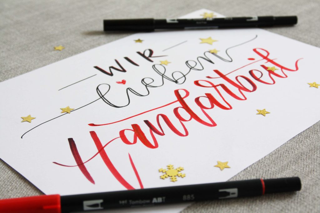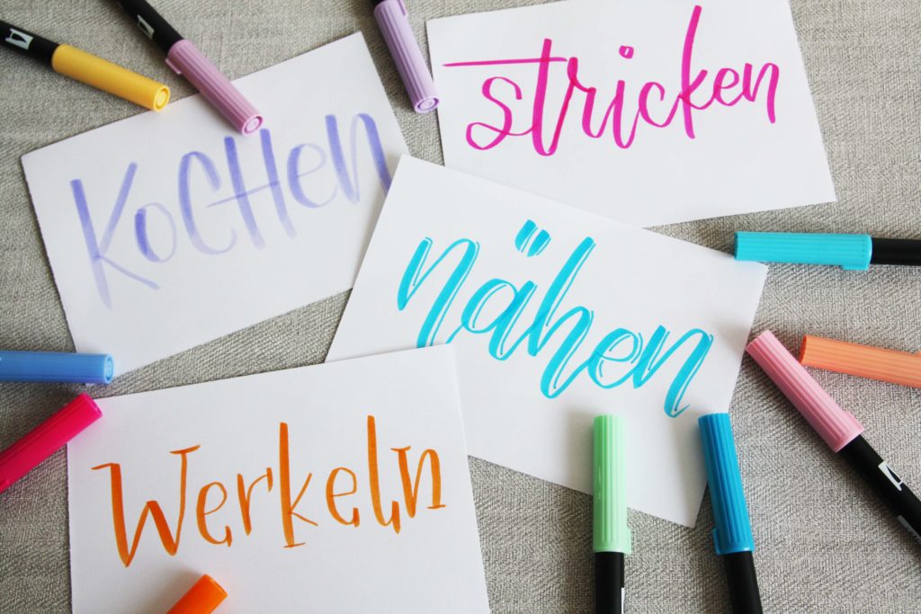 Diese Stifte sind ideal, um mit Handlettering anzufangen. Da es BRUSHpens sind, nennt man diese Art des Schönschreibens auch „Brushlettering“. Diese Stifte gibt sie in allen möglichen (traumhaften) Farben. Die Handhabung ist anfangs etwas ungewohnt, aber wirklich nur eine Übungssache. 😉