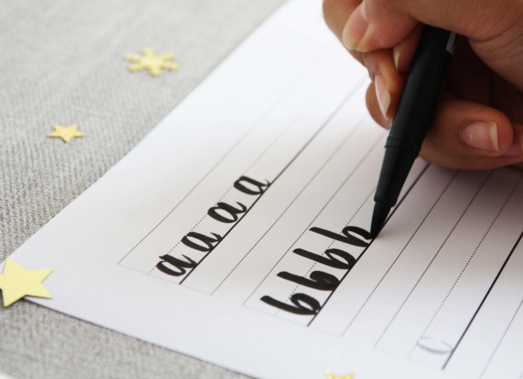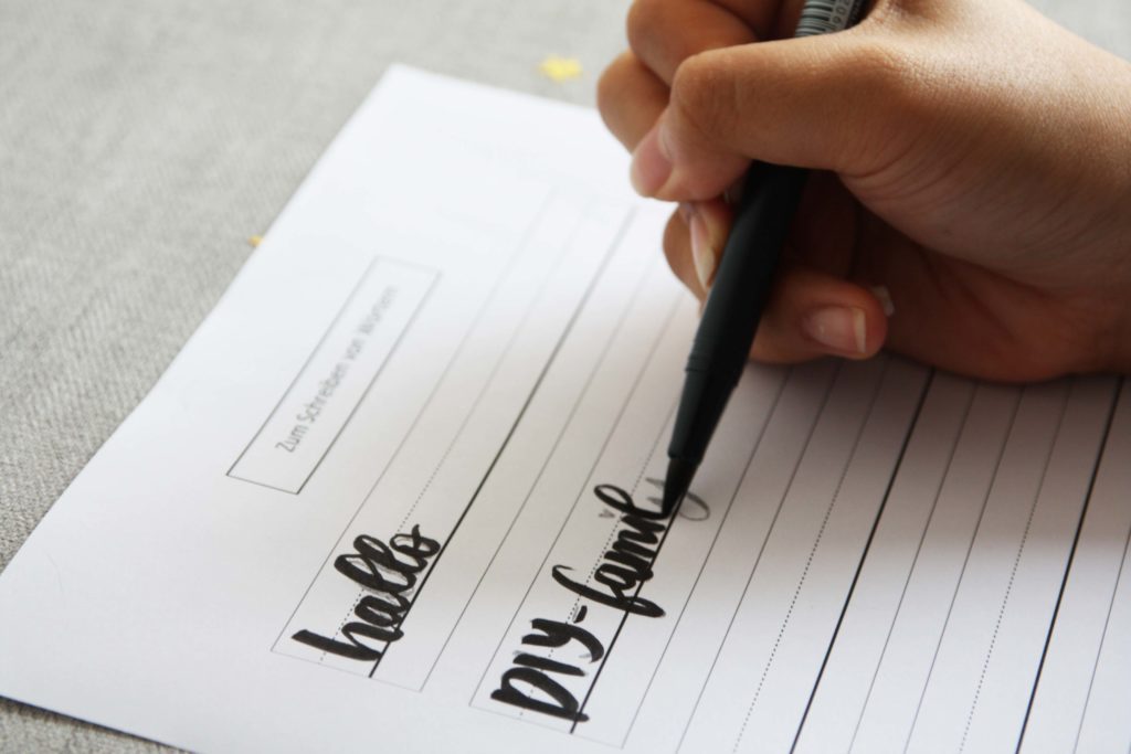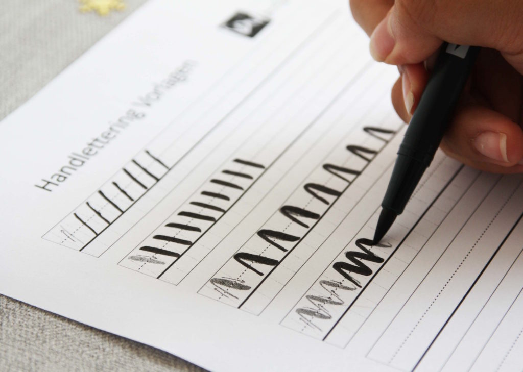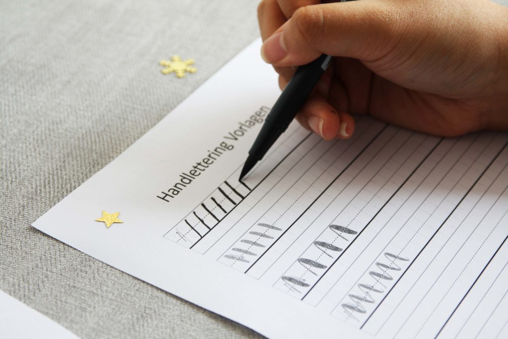 Die ersten Striche sind immer die schwierigsten. 🙂 Nehmt euch deshalb einen Brushpen eurer Wahl und gewöhnt euch als Erstes an die Handhabung. Als Hilfe könnt ihr euch gern unsere VORLAGEN ausdrucken. Sie werden euch die ersten Schritte vereinfachen!