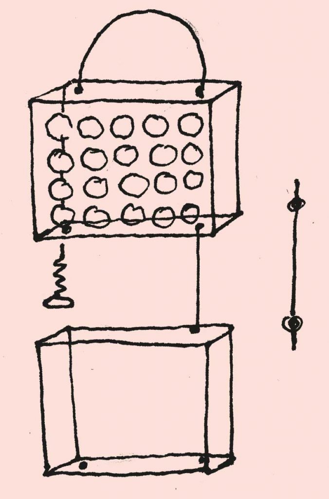 - In die Längsseiten der Kartons rechts und links Löcher bohren und mit langen Schnüren verbinden.
