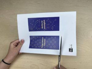 Nun schneidest du die einzelnen „Sprüche“ aus. Ich empfehle dir, diese innen am Rand auszuschneiden, so hast du die Umrandungslinie direkt weggeschnitten.