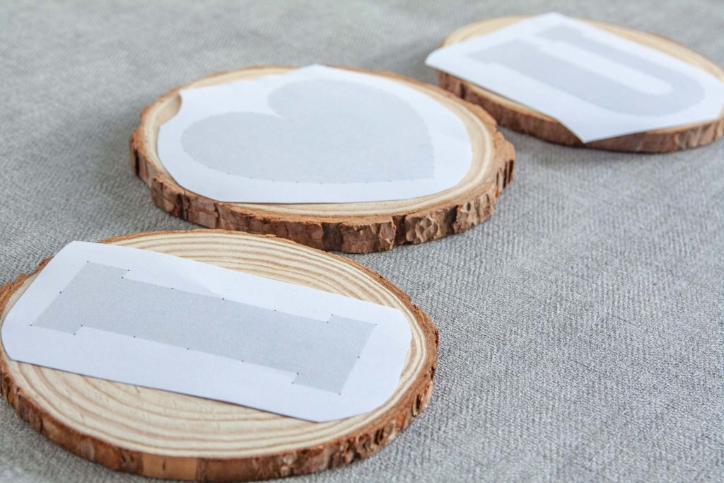 Anschließend entfernt ihr das Papier vorsichtig von den Holzscheiben.