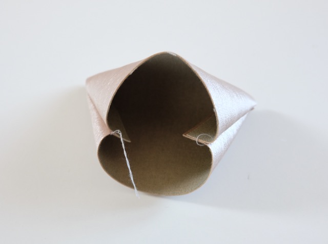 Steckt das fertige Rechteck nun mittig mit der offenen Seite nach unten auf die Naht des vorher geschlossenen Rings.