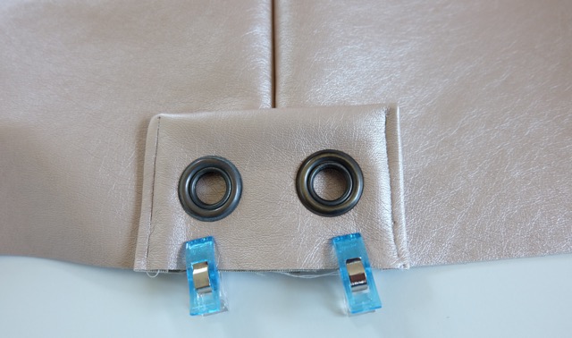Schlagt am oberen Rand die Ösen ein. Die Positionen sind im Schnitt markiert. Wichtig ist hier eine gerade Anzahl der Ösen falls ihr diese variieren möchtet.